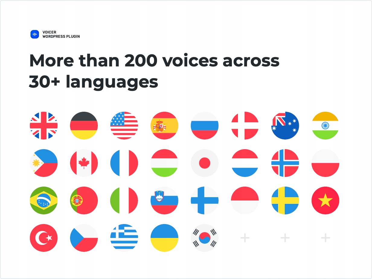 Voicer Text to Speech to wtyczka WordPress, która przekształca tekst na mowę za pomocą technologii Google Cloud Text-to-Speech. Umożliwia automatyczne odczytywanie treści strony naturalnie brzmiącymi głosami w wielu językach, co zwiększa dostępność witryny i poprawia komfort użytkowników, zwłaszcza osób z trudnościami w czytaniu.